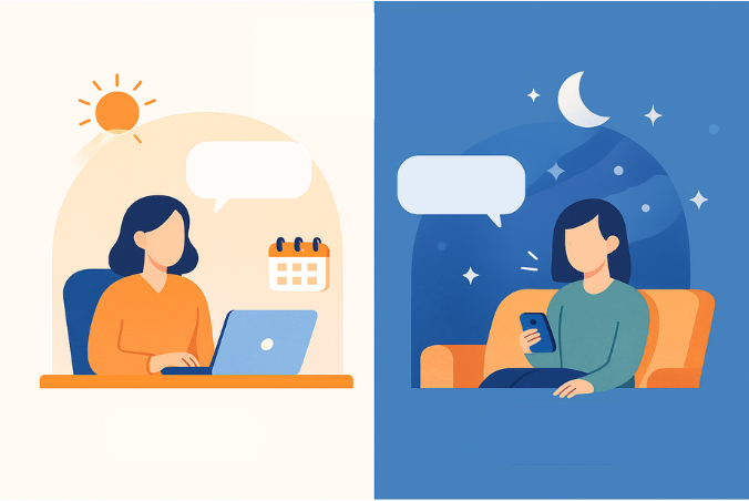 音声・テキストの両方でセッションが可能。利用シーンに応じて使い分け。