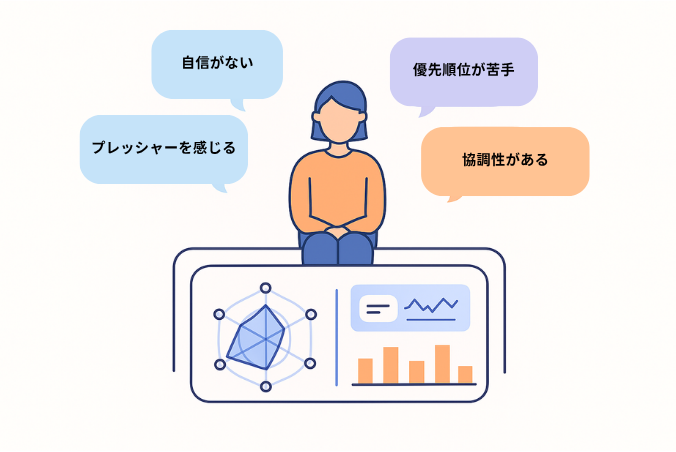 社員のキャリア志向・悩み・価値観などの思考傾向を可視化。個人には長期的な育成プランを、組織には集約データから課題改善のヒントを提供。